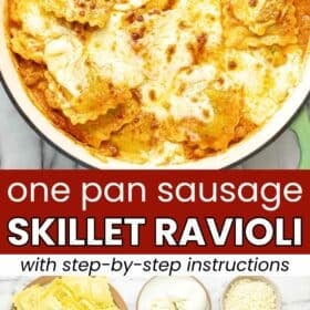 This creamy sausage ravioli skillet is a cozy, one-pan dinner made with refrigerated ravioli, Italian sausage, jarred sauce, and plenty of melty cheese. Itโ€™s ready in about 30 minutes and perfect for an easy, comforting weeknight meal.