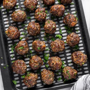 Freshly chopped parsley adds tons of bright flavor to these meatballs and contrasts perfectly with the dried herbs. Feel free to switch it up and add other fresh herbs in place of the parsley. You can also use dried parsley but add half the amount called for in the recipe as the flavor of dried herbs is more concentrated.