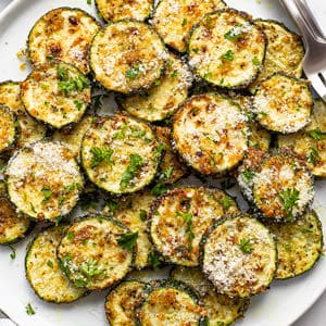 - Add just a pinch of salt initially and add more to taste after cooking. The Parmesan cheese is going to add some salty flavor as well so to avoid your zucchini being too salty, add a pinch of salt with the herbs and spices, and then add more to taste after you’ve cooked the zucchini.
