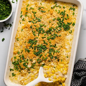 - If you loved this cheesy corn recipe, make sure you check out my Easy Greek Bean Casserole, my Broccoli Cheese Twice Baked Potatoes, or my Baked Cheesy Potato Casserole.