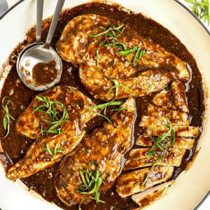- The sauce will thicken as it cools so keep that in mind as you’re cooking it to the consistency you like. You can always add additional chicken broth if it’s too thick or cook it down for a bit longer if it’s too thin.