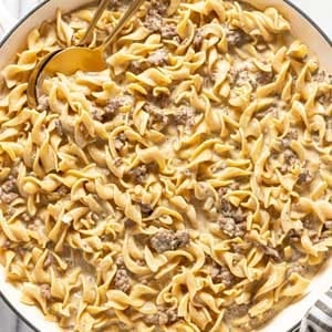 - If you’re going for more of a stroganoff-type dish, add some sliced mushrooms! I’d recommend adding about 8 ounces of sliced mushrooms at the same time that you add the onions.