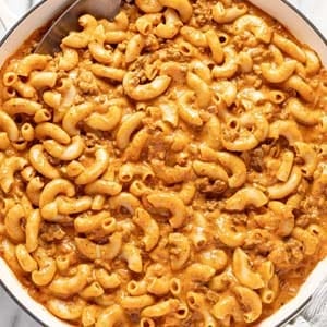 - Sauce. The sauce in this beefaroni will thicken as it cools. Plan to add a splash of cream before reheating.