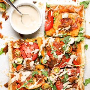 - Spread half the balsamic aioli across the puff pastry, keeping it inside the crust.