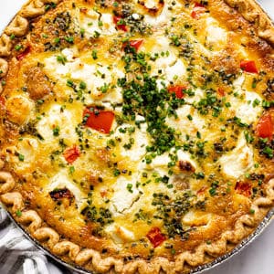 - Fill the quiche with whatever you’d like! This recipe is super forgiving, but the amount of egg custard is measured to fit with all these ingredients, so if you’re subbing different ingredients, be sure to keep the ratios about the same.