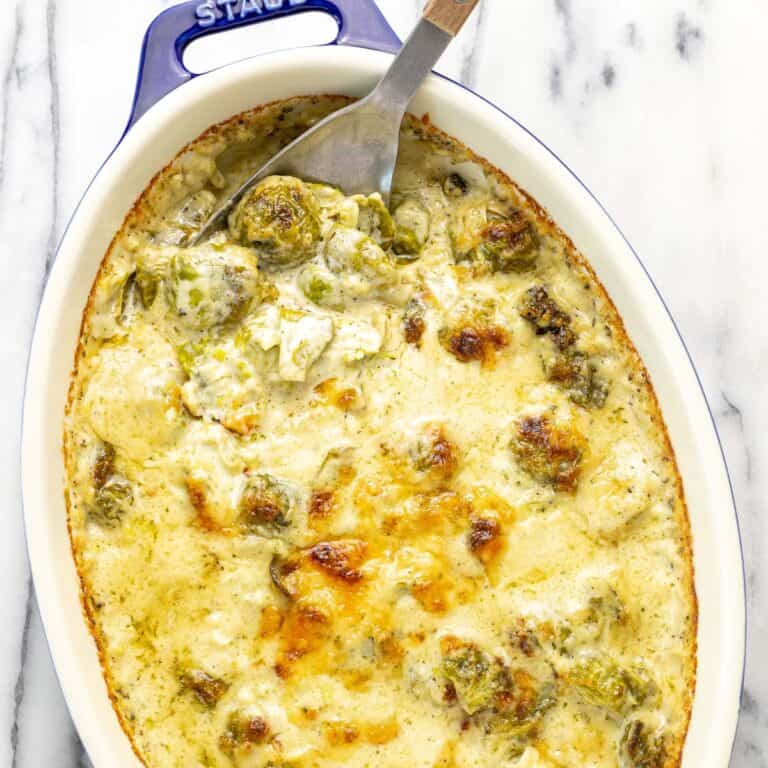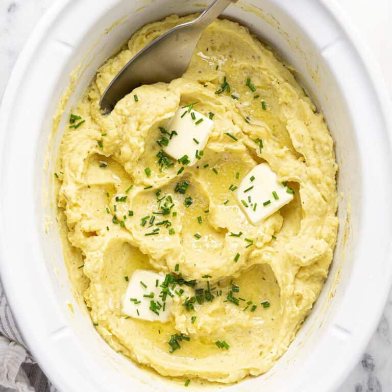 Start with my green bean casserole with bacon, air fryer asparagus, or baked cheesy potates (made without condensed soup!).