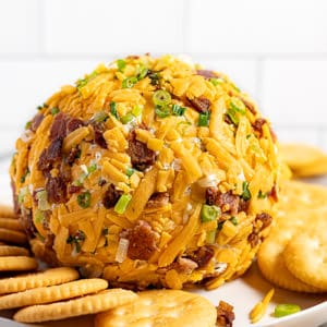 - Add remaining green onion, sharp cheddar, and bacon to a wide shallow bowl. Cover and refrigerate for 2 hours with the cheese ball.