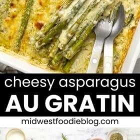 This easy cheesy asparagus au gratin comes together in just 30 minutes with tender roasted asparagus and a rich, creamy Gruyere cheese sauce. Itโs the perfect quick and comforting side dish for any dinner table.