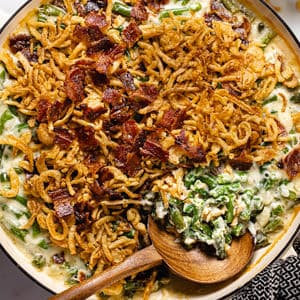 - To make this green bean casserole vegetarian, just skip the bacon! The flavors will still be delicious without the bacon.