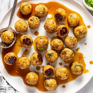 - Don’t overmix the ingredients. Mix the chicken meatball ingredients just until combined or the meatballs will end up with a tough texture.