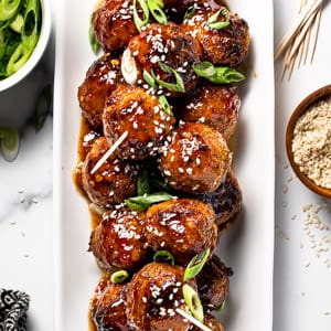 - On the “bake” setting of the Instant Vortex, the heat comes from the coil at the top. I find this ideal because it allows the meatballs to get a bit crispy on top as well as they heat through. If you find that the meatballs are starting to get a bit too dark on top (even after stirring) go ahead and cover the baking dish with foil. This will prevent the meatballs from browning further.