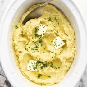 These crock pot mashed potatoes are rich, creamy, and very hands-off thanks to slow cooker convenience. Roasted garlic and cream cheese make them extra flavorful and perfect for holidays or easy weeknight dinners!