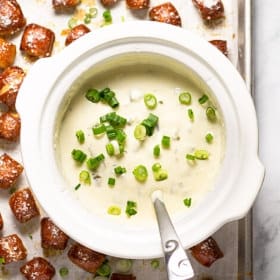Feel free to add more milk to help loosen it up. As the cheese sauce sits it will likely thicken up a bit so don’t be afraid to add a tablespoon at a time of milk as needed. This will keep it loose and creamy.