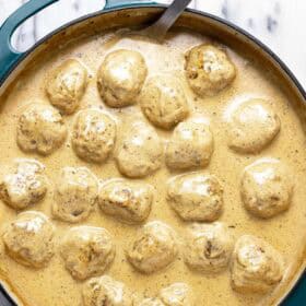 These easy Swedish meatballs are tender, perfectly spiced, and simmered in a rich, creamy gravy. Serve them over egg noodles for a cozy, restaurant-quality dinner that comes together quickly and easily!