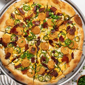 - Don’t skip the par-bake. Partially baking the pizza crust is going to give you that perfect crispy crust and ensure that the toppings don’t make the pizza crust soggy. It also helps to create a sturdy base for the cream cheese to be spread across.