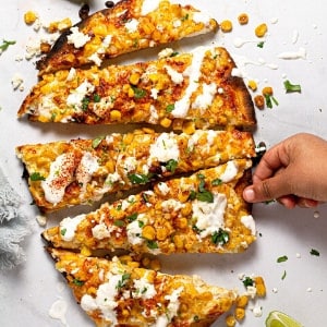 - Divide corn evenly between the flatbreads.