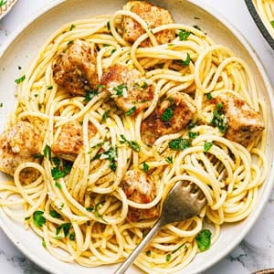 - Stir in lemon zest, lemon juice, and parsley. Add spaghetti and a splash or two of pasta water as needed. Toss to coat evenly.