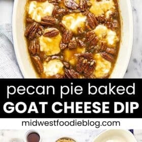 This pecan pie baked goat cheese dip is an easy, crowd-pleasing appetizer made with creamy goat cheese and a warm brown sugar pecan topping. Ready in 30 minutes and perfect for the holidays or entertaining.