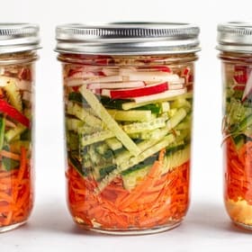 - Screw the lids on and refrigerate pickled veggies for at least 8 hours and up to three weeks.