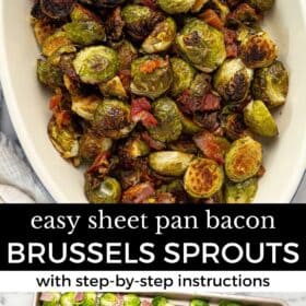 These roasted Brussels sprouts with bacon are the ultimate easy side dish. They’re crispy, caramelized, and packed with savory flavor! The best part is it’s a dump-and-bake, one-pan side dish that’s perfect for busy weeknights or holiday dinners.