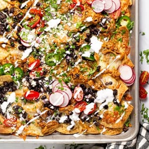 Sheet Pan Shredded Chicken Nachos