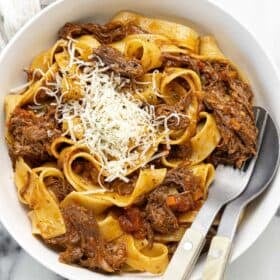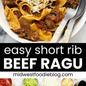 This hearty, slow-simmered short rib beef ragu is surprisingly simple to make and perfect for cozy nights when you want a restaurant-quality meal right at home. Once the short ribs are seared, they simmer in a homemade tomato sauce while filling your kitchen with the most incredible aroma. Perfect for Sunday dinner!