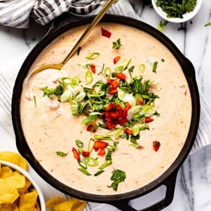 - If you don’t have a large cast-iron skillet you could make this cheese dip in a 9×13 disposable aluminum pan or another grill-safe baking dish.
