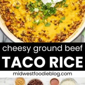 This easy one-pan cheesy taco rice comes together in just 30 minutes with simple ingredients like ground beef, black beans, and enchilada sauce for a hearty, flavor-packed weeknight dinner everyone will love! It’s the perfect way to satisfy your taco cravings without all the mess.ย