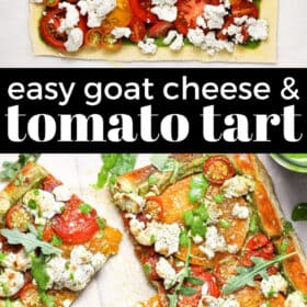 - Basil Pesto – Basil and tomatoes are a match made in heaven and basil pesto adds a ton of delicious, earthy flavors to this rustic tomato tart. You can use any brand of store bought pesto, or make your own with my easy basil walnut pesto.