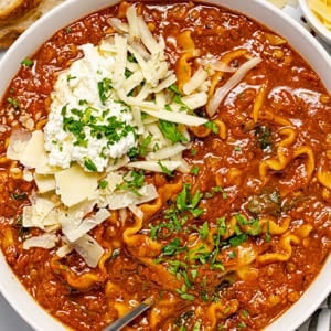 - Top the soup (or individual bowls) with Parmesan cheese, mozzarella cheese, and a dollop of ricotta. Put the lid back on the soup for a few minutes to allow the cheese to melt. Garnish with parsley and enjoy!